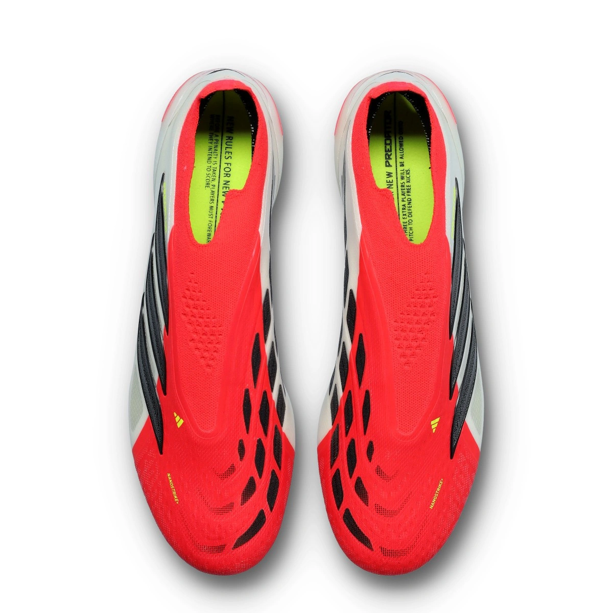 adidas Predator Elite LL FG Voetbalschoenen voor volwassenen. Synthetische schoenen zonder veters voor gebruik op natuurgrasvelden. High-end schoenen in de kleur Lucid Red-Core Black-White.