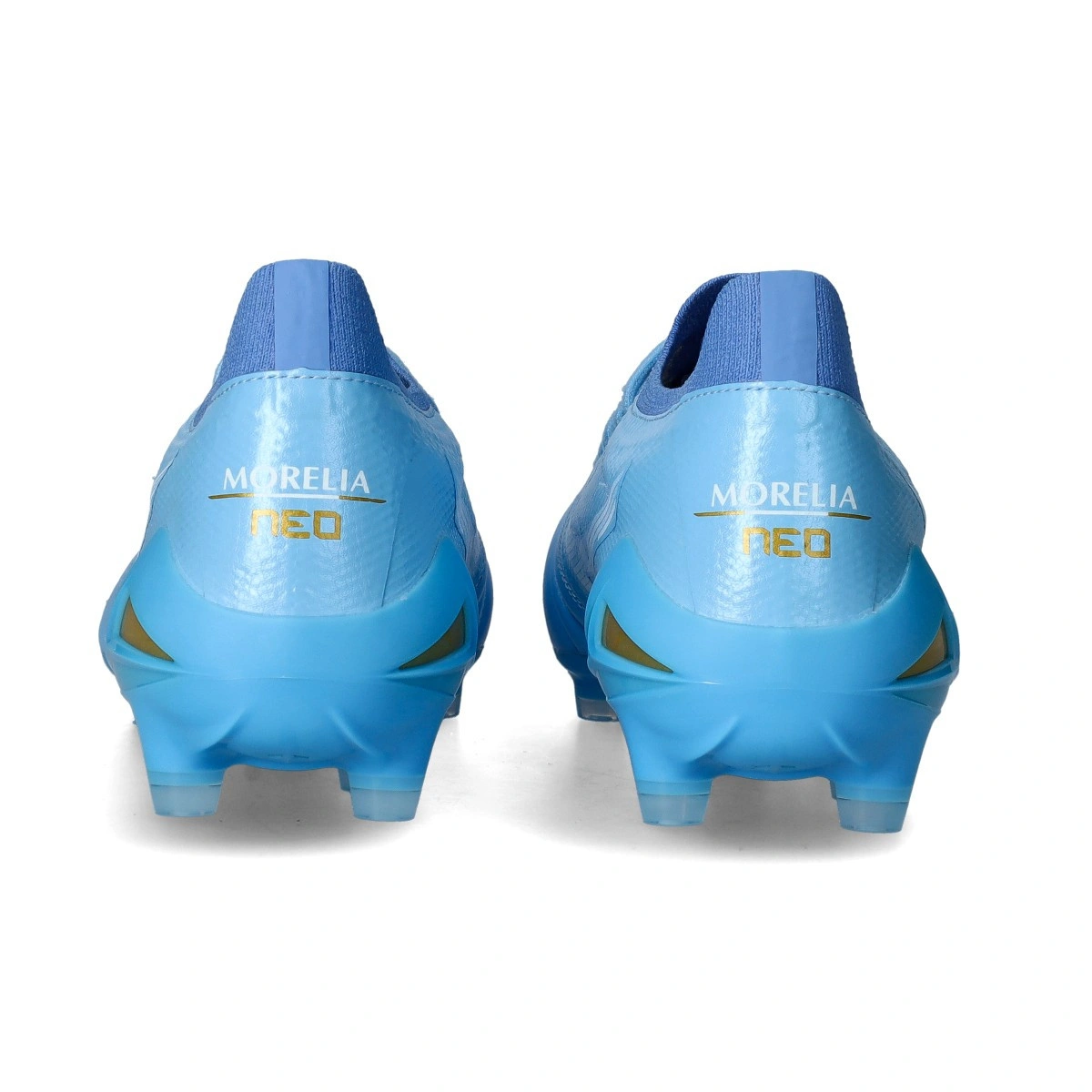 Mizuno Morelia Neo IV Beta Elite FG voetbalschoenen. Schoenen gemaakt van kangoeroeleer, voor natuurgrasvelden. Hoogwaardig assortiment schoenen in de kleur Hemelsblauw-White-Ultramarine.