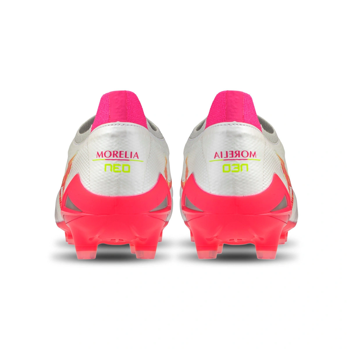 Voetbalschoenen Morelia Neo IV Beta Elite FG. Schoenen gemaakt van kangoeroeleer, voor natuurgrasvelden. Hoogwaardig assortiment schoenen in de kleur White-Pink Tetra-Fuchsia Purple.