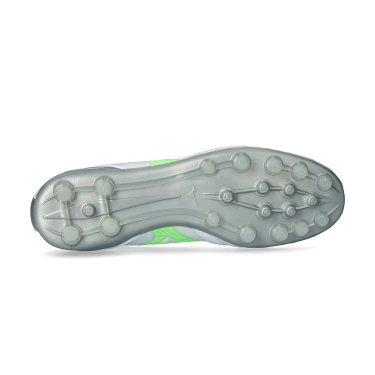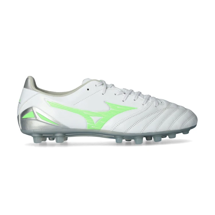 Mizuno Morelia Neo IV Pro AG voetbalschoen voor kunstgrasvelden in de kleuren Wit-Neon Groen-Cool Grijs 3C.