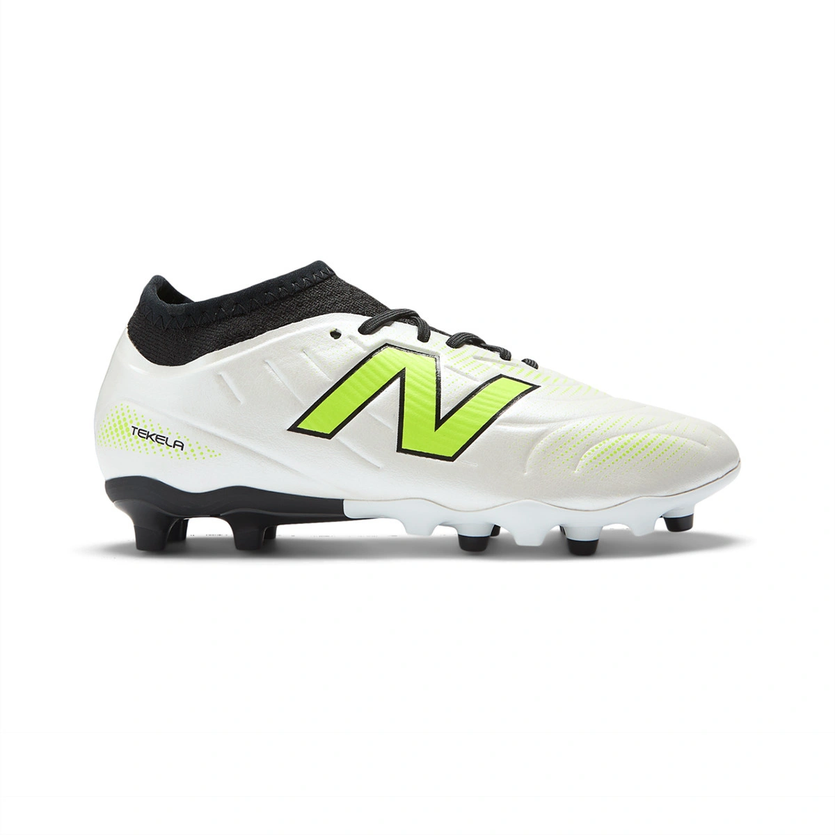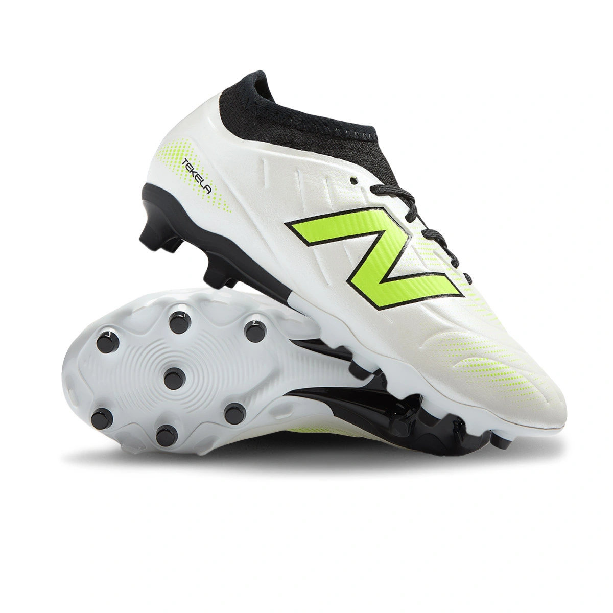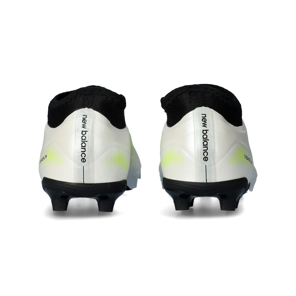 New Balance Tekela Team Low FG V5 voetbalschoenen voor jongens. Witte schoenen voor gebruik op natuurgrasvelden.