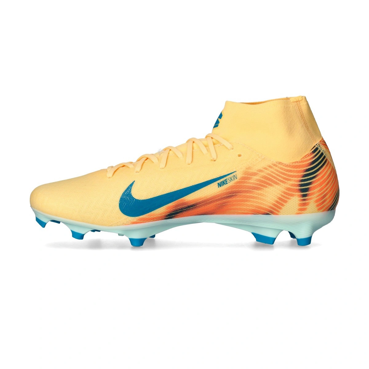 Nike Air Zoom Mercurial Superfly 10 Academy KM FG/MG voetbalschoen. Schroefdraadschoen te gebruiken op kunstgras of natuurgras. Basisbereik laars in Melon Tint-Neo Turq-Igloo kleurstelling.