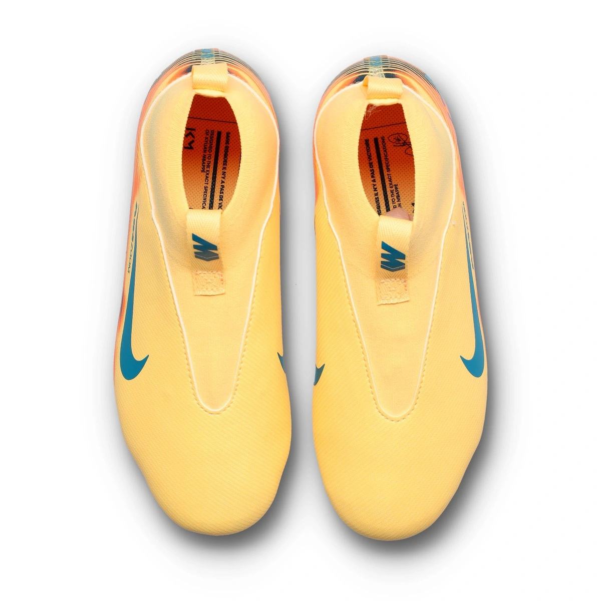 Ontworpen voor de pure snelheid van Kylian Mbappé, de nieuwe schoenen van de Franse ster komen in een levendige oranje kleur, al eerder te zien in eerdere edities. Met een lichtgewicht en explosief ontwerp viert deze collectie Mbappé's nieuwe tijdperk bij Real Madrid, waarbij hoogwaardige technologie wordt gecombineerd met exclusieve details: zijn persoonlijke logo, verwijzingen naar Frankrijk en de witte club. Ontworpen voor iedereen die het verschil wil maken. Haal de jouwe nu in huis!