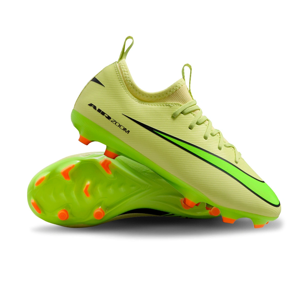 Nike Air Zoom Mercurial Vapor 16 Academy FG/MG voetbalschoenen voor kinderen. Veterschoenen voor gebruik op natuurlijke of kunstgrasvelden van elke generatie. Instapschoenen in Limelight-Volt-Hyper Crimson.