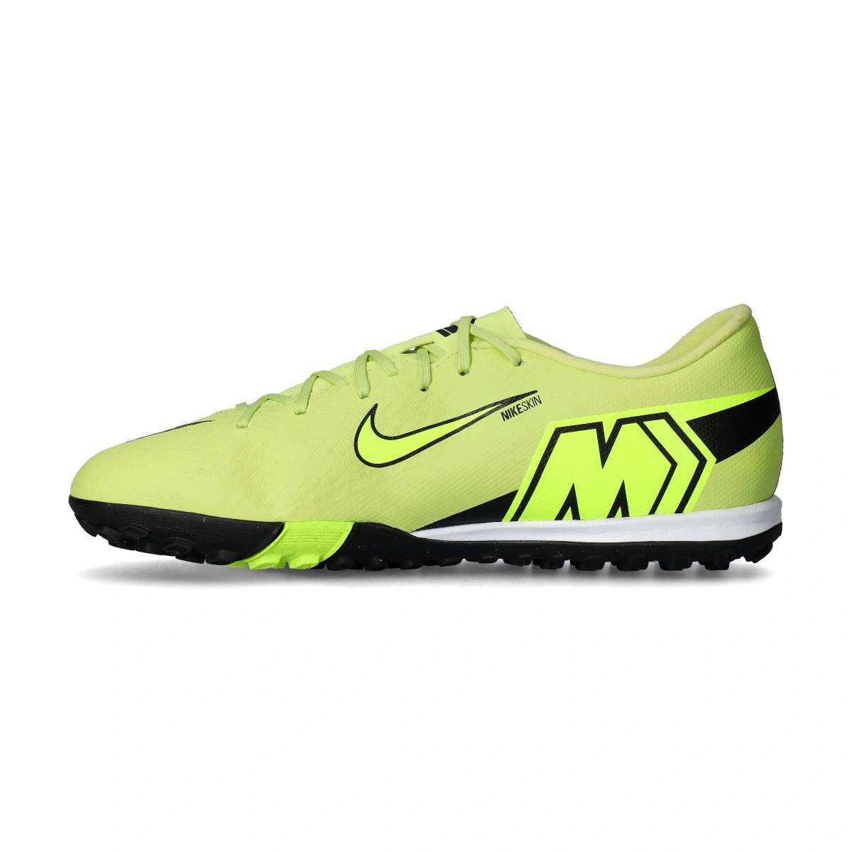 Luchtkussen Mercurial Vapor 16 Academy Turf voetbalschoen voor volwassenen. Synthetische bovenschoen voor gebruik op tapijt, kunstgras of betonnen velden. Schoen in Limelight-Volt-Hyper Crimson kleurstelling.
