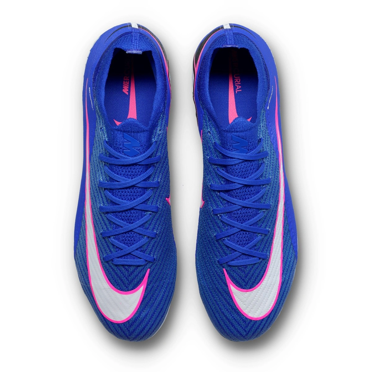 Nike Air Zoom Mercurial Vapor 16 Elite FG voetbalschoenen voor volwassenen. Gebreide schoenen, zonder sok, voor gebruik op natuurgrasvelden. Topklasse schoenen voor snelle spelers in de kleur Racer Blue-White.