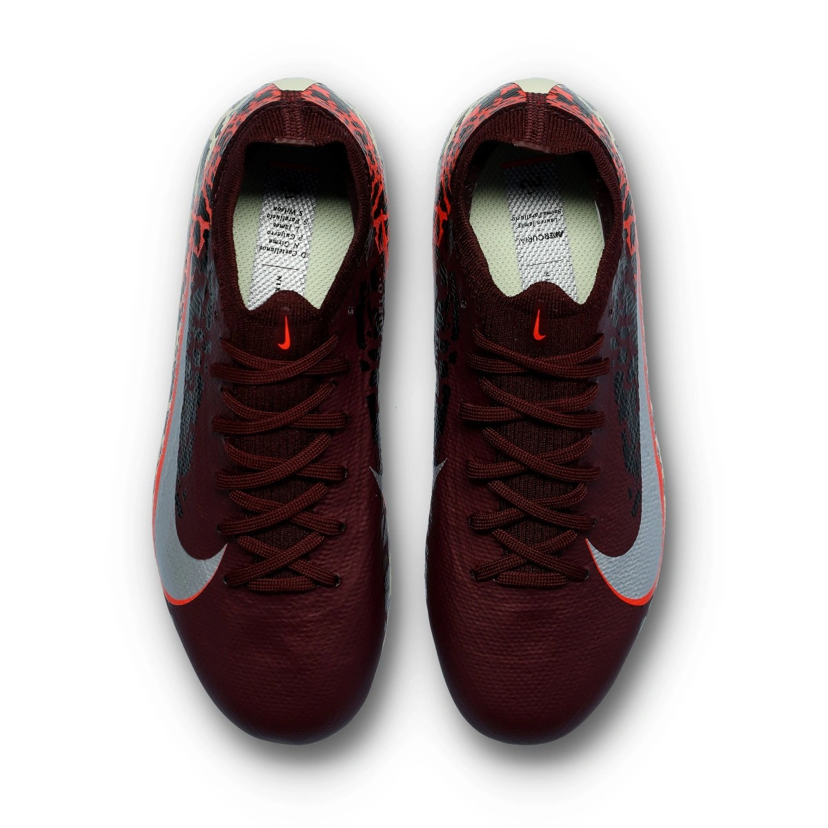 Nike Zoom Mercurial Vapor 16 Pro FG voetbalschoen voor kinderen. Gebreide schoenen voor gebruik op droog natuurgras. Schoenen uit het gemiddelde assortiment in de kleur Burgundy Crush-Mtlc Silver-Univ Red-Fossil.