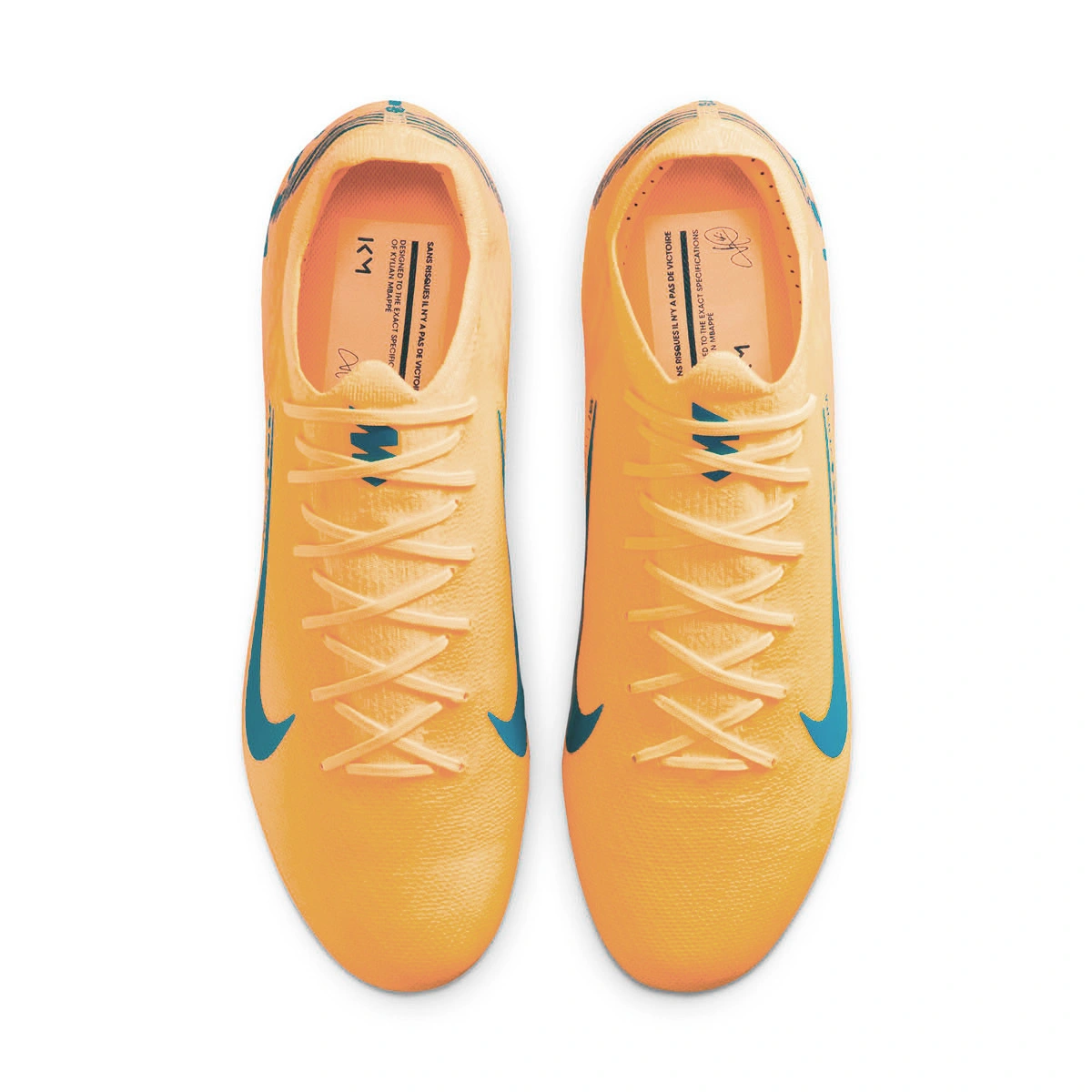 Ontworpen voor de pure snelheid van Kylian Mbappé, de nieuwe laarzen van de Franse ster komen in een levendige oranje kleur, al aanwezig in eerdere edities. Met een lichtgewicht en explosief ontwerp viert deze collectie Mbappé's nieuwe tijdperk bij Real Madrid, waarbij hoogwaardige technologie wordt gecombineerd met exclusieve details: zijn persoonlijk logo, verwijzingen naar Frankrijk en de witte club. Ontworpen voor iedereen die het verschil wil maken. Haal de jouwe nu in huis!