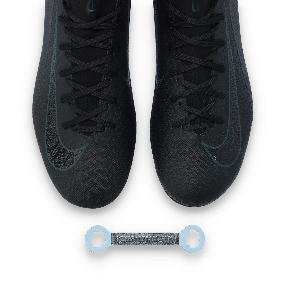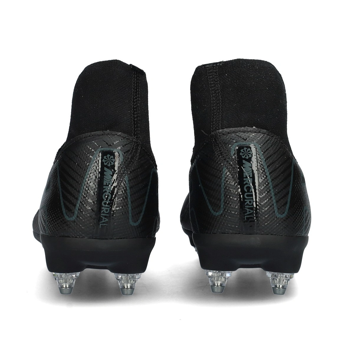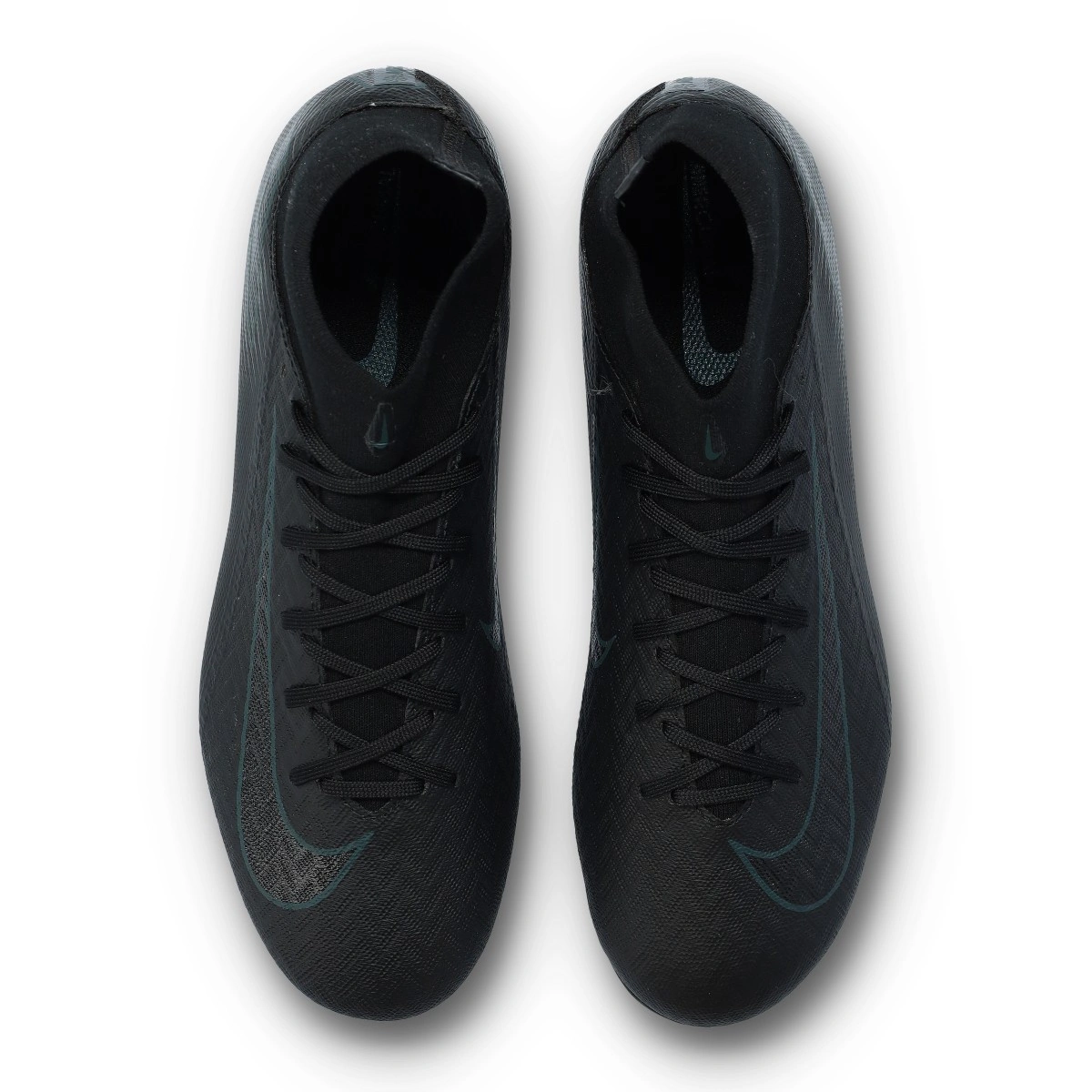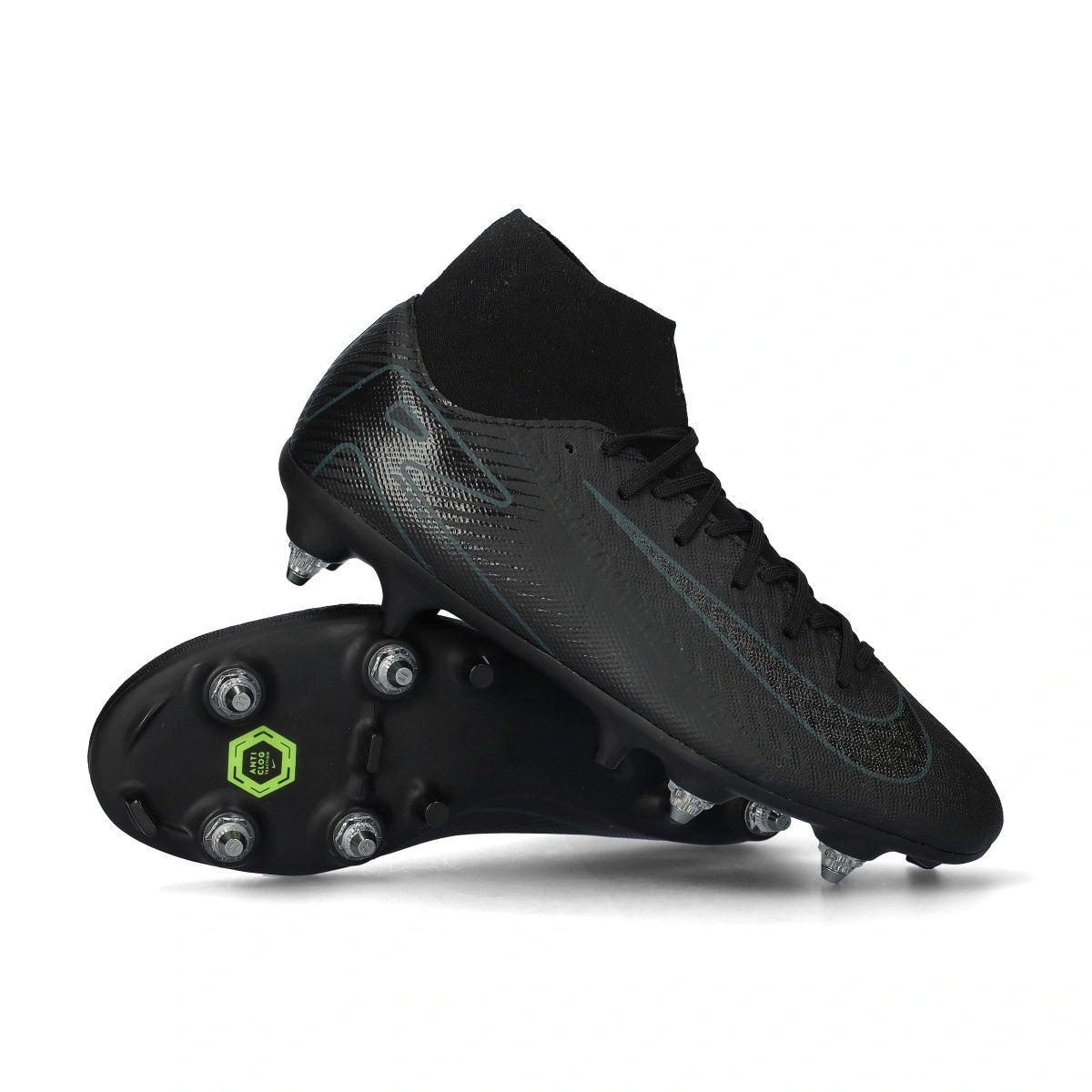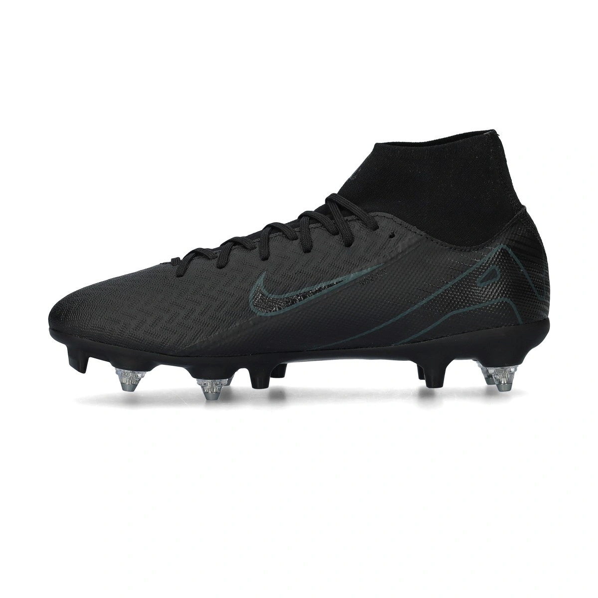 Voetbalschoenen Nike Superfly 10 Academy SG-Pro voor volwassenen. Synthetische schoenen met sok, voor natte of vochtige natuurgrasvelden. Voetbalschoenen uit het middensegment in de kleur Black-Black-Deep Jungle. Voor dodelijke spelers.