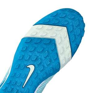 Nike Zoom Mercurial Superfly 10 Academie Gras voetbalschoenen. Synthetische schoenen met sok voor gebruik op tapijt, beton of kunstgrasvelden. Basisschoenen in Glacier Blue-Blue Orbit colourway.