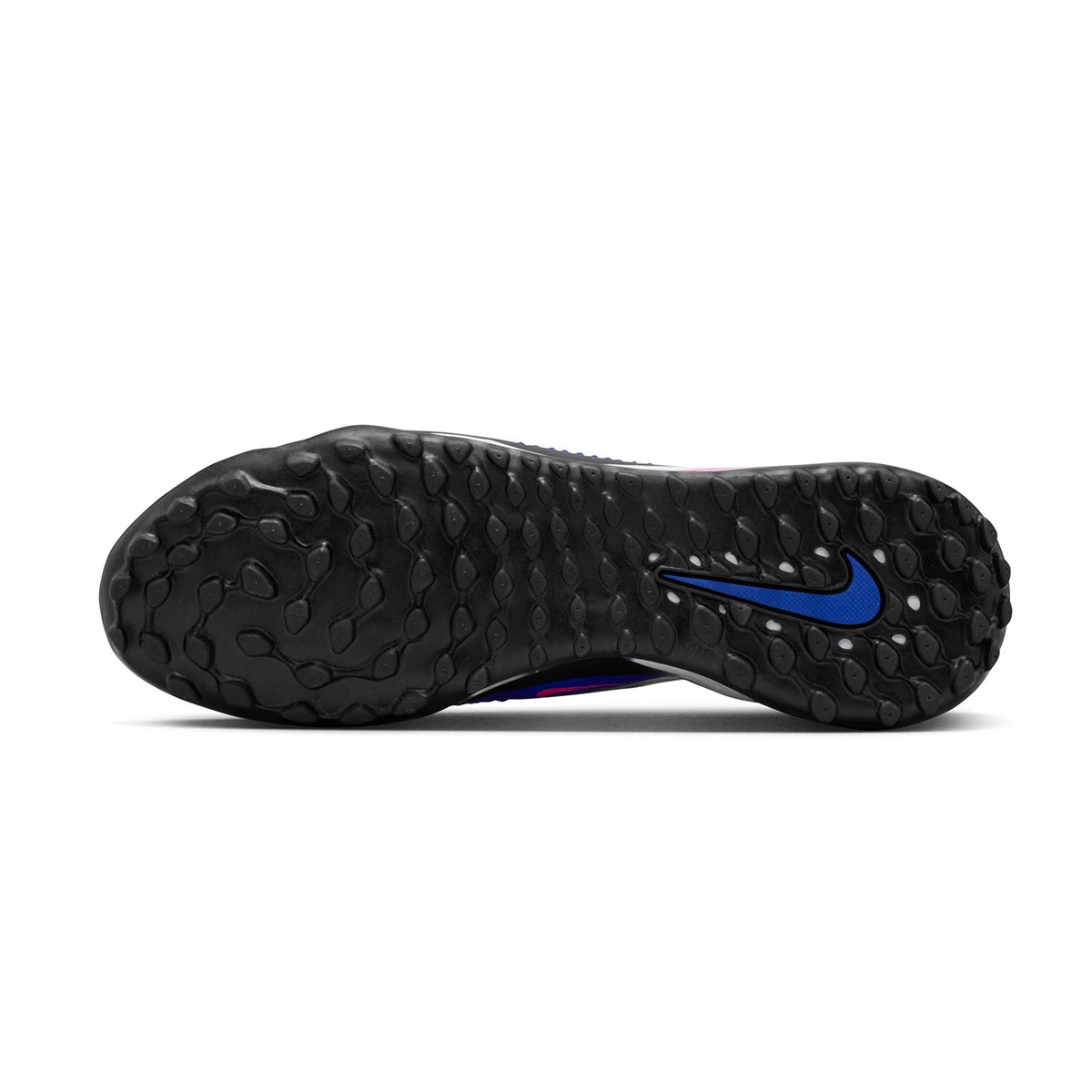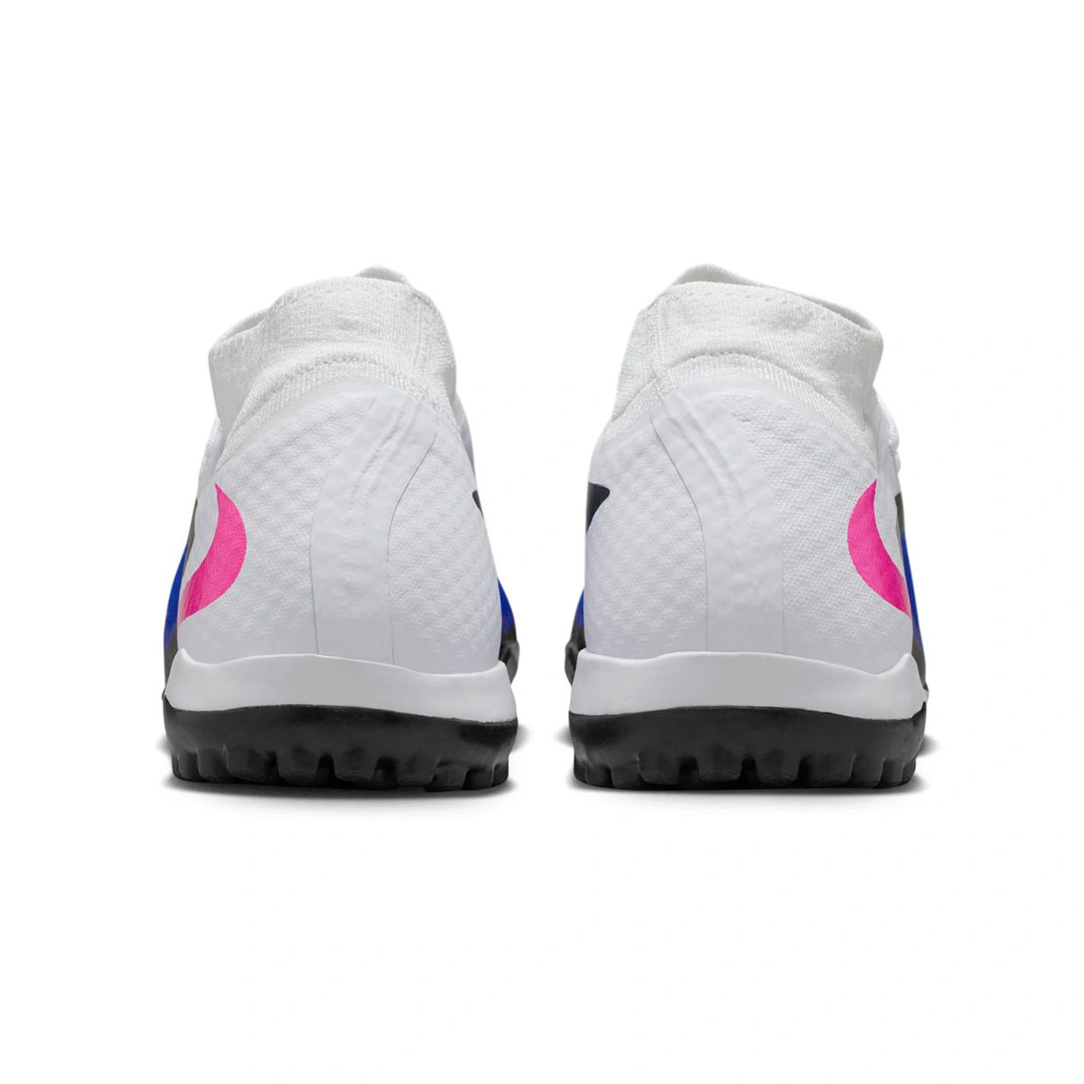 Nike Phantom 6 High Academy Turf voetbalschoen. Gebreide schoen met sok, voor gebruik op tapijt of kunstgrasvelden. Instapmodel schoenen voor spelers die controle en precisie zoeken, in de kleur Racer Blue-Pink Blast-White.