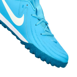 Nike Phantom Gx II Academie Gras voetbalschoen voor Kinderen . Schoenen met schroefdraad zonder sok voor gebruik op kunstgrasvelden van elke generatie, aarde of betonnen velden. Mid-range schoenen voor controle en precisiespelers in Blue Fury-White colourway.