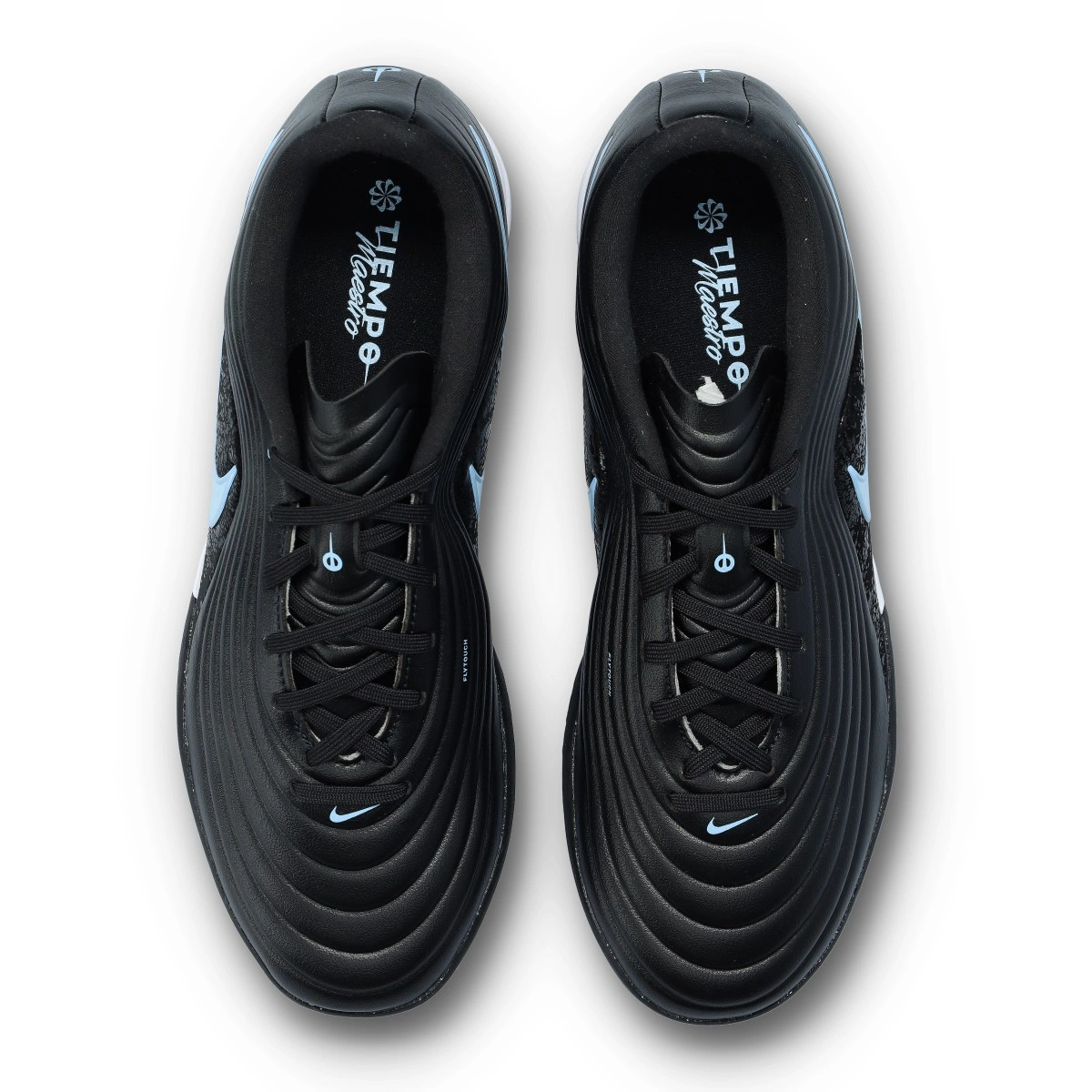 Nike Tiempo Maestro Academy voetbalschoenen Turf. Schoenen  voor gebruik op tapijt- of kunstgrasvelden. Instapmodellen schoenen in de kleur Black-Ice Blue.