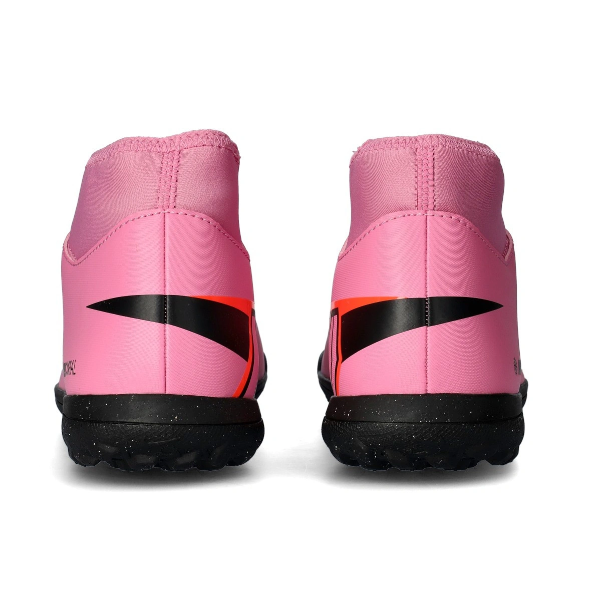 Nike Mercurial Superfly 10 Club Gras voetbalschoen. Synthetisch bovenwerk met inlegzool voor gebruik op tapijt, kunstgras of betonnen velden. Instapmodel laars in Magic Flamingo-Black-Total Crimson colourway.