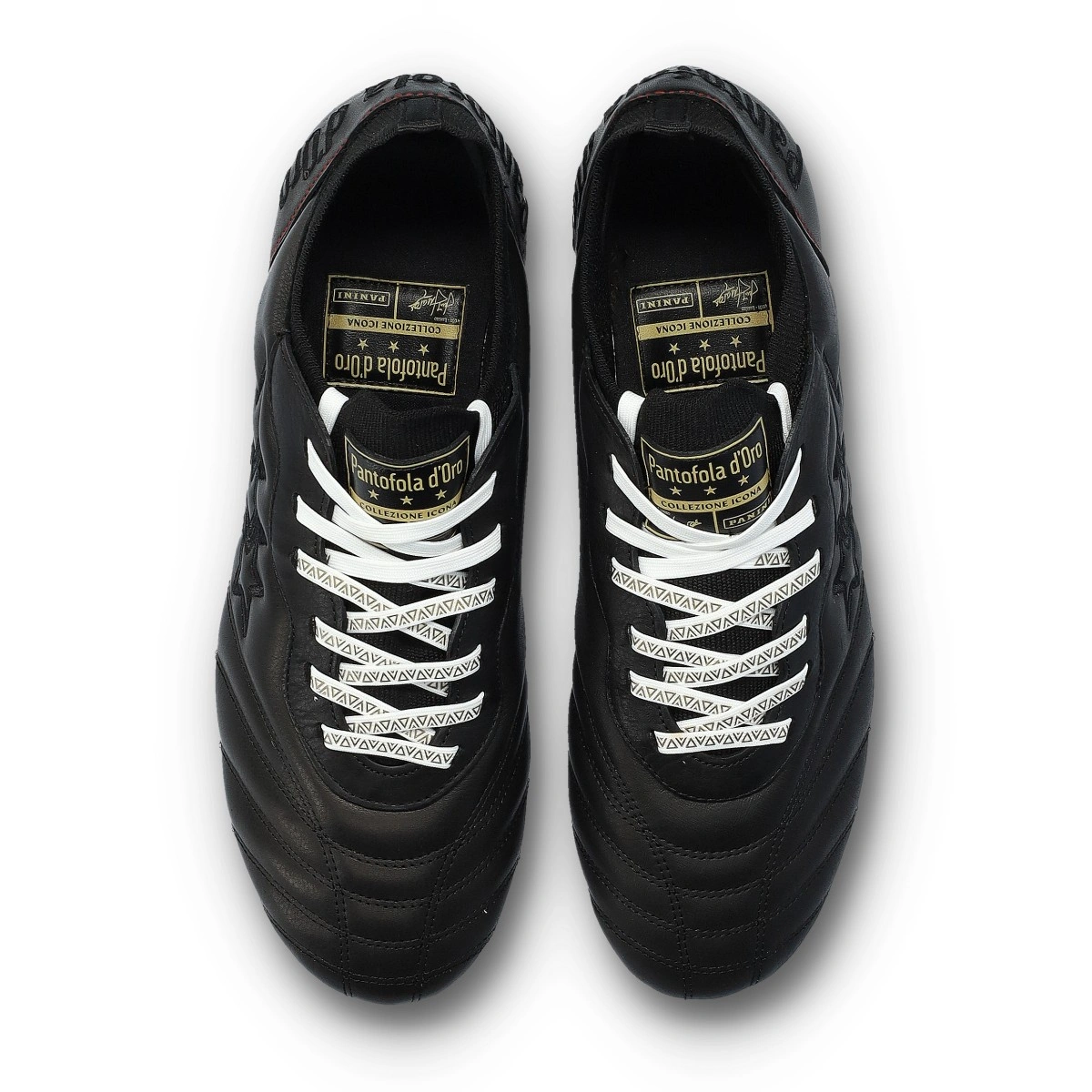 Pantofola d'Oro Super Star Elite x Luisito FG/AG voetbalschoen. Leren schoen, perfect voor harde natuurgrasvelden. Hoogwaardige schoen in zwart.