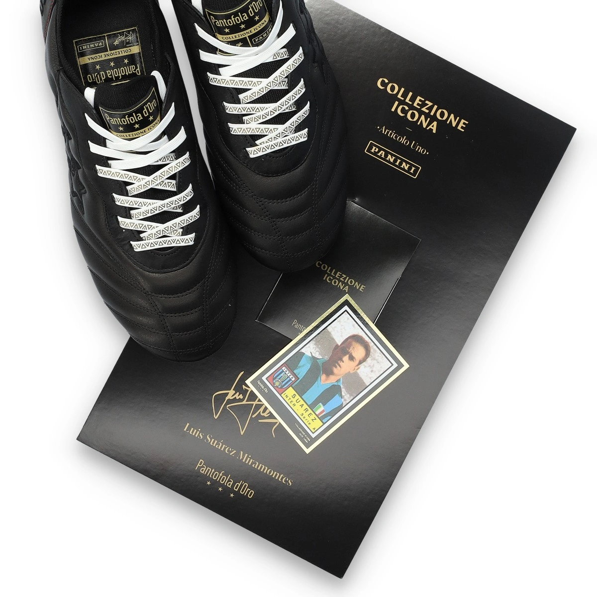 Vier een icoon met de Pantofola d'Oro Superstar Elite x Luisito FG, een speciale editie van de Superstar als eerbetoon aan een van de beste middenvelders, ‘El Arquitecto’ Luis Suárez Miramontes. De schoenen maken deel uit van de ‘Collezione Icona’ van PdO en Panini en worden geleverd in een speciale presentatiedoos met een heruitgave van Suárez' Panini-kaart.