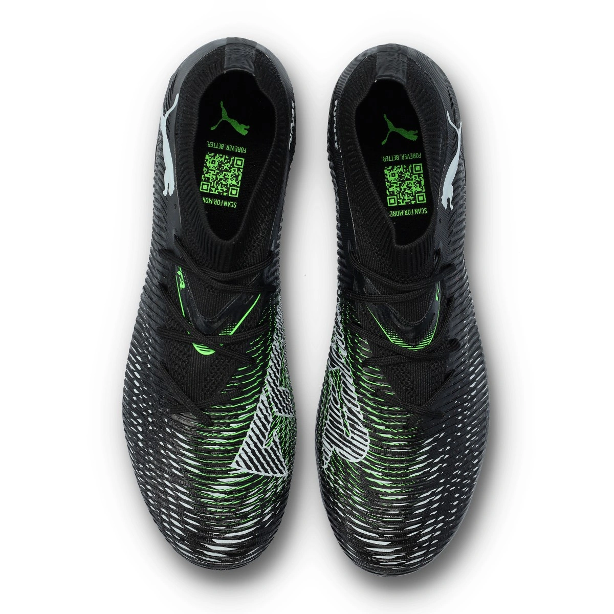 Puma Ultra 5 Match MxSG voetbalschoenen voor volwassenen. Synthetische schoenen voor gebruik op natte of modderige natuurgrasvelden. Low-end laarzen in de kleur Fizzy Apple-White-Bluemazing.