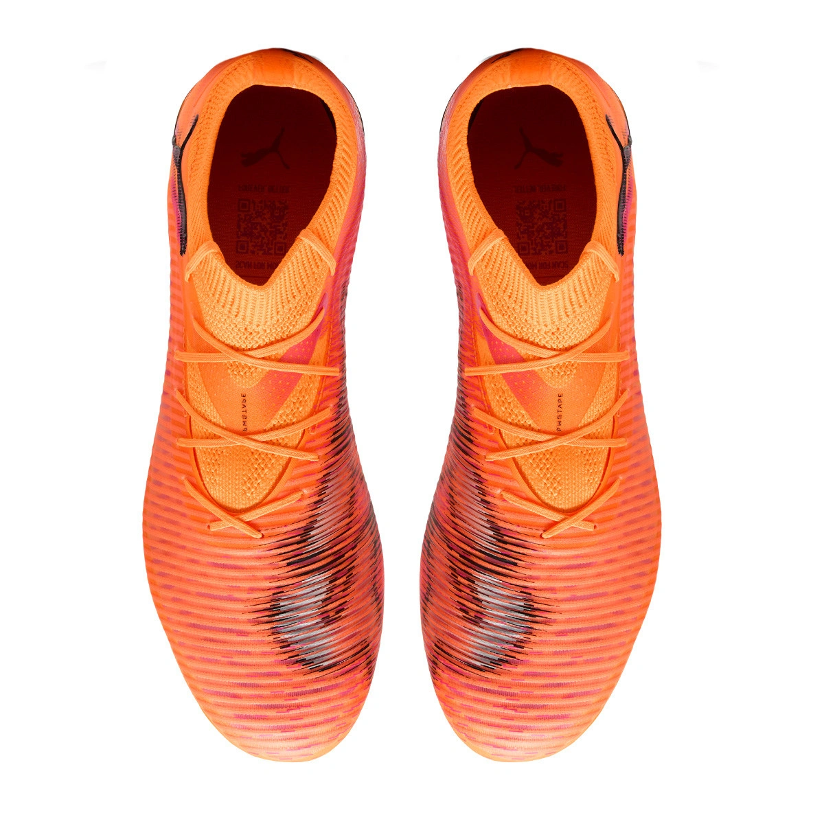 Puma Future 8 Pro FG/AG voetbalschoenen. Synthetische voetbalschoenen voor natuurgras en kunstgrasvelden. Voor aanvallende spelers in Heat Fire-Black-Ravish kleurstelling.