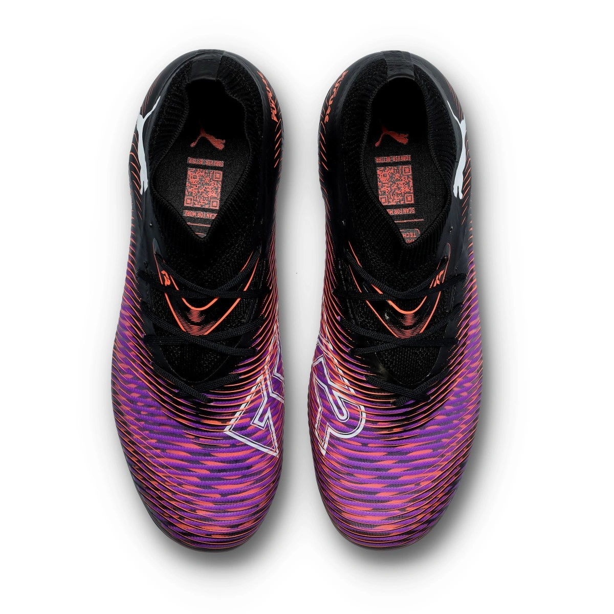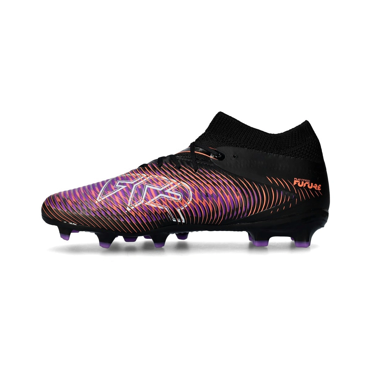 Puma Future 8 Pro FG/AG voetbalschoenen voor kinderen. Synthetische voetbalschoenen voor natuurgras en kunstgrasvelden. Voor aanvallende spelers in Heat Fire-Black-Ravish kleurstelling.