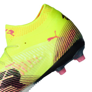 Dames Puma Future 8 Ultimate AG voetbalschoenen. Laarzen met schroefdraad voor gebruik op kunstgrasvelden. Hoogwaardig laarzen in Yellow Alert-Puma Black-Sun Struck colourway.