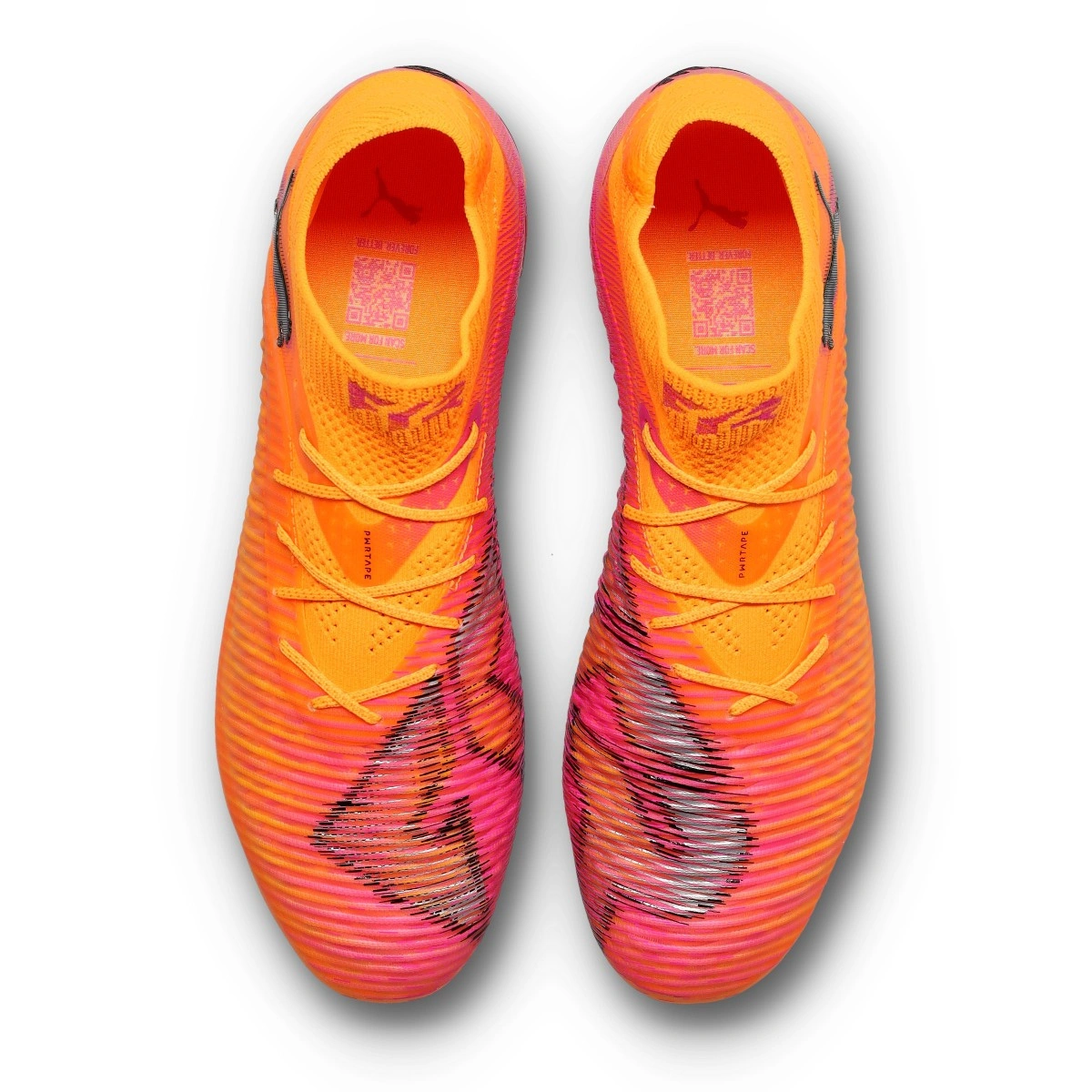 Puma Future 8 Ultimate FG voetbalschoenen voor volwassenen. Veterschoenen voor gebruik op natuurgrasvelden. Hoogwaardige schoenen in de kleur Heat Fire-Black-Ravish.