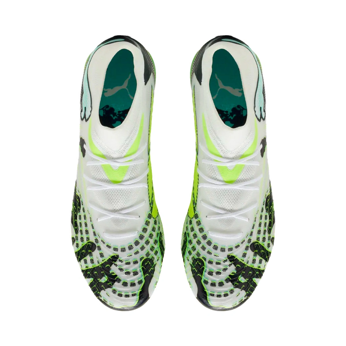 Voetbalschoen Puma Future 9 Match Creativity FG/AG voor volwassenen. Synthetische schoenen voor gebruik op kunstgras en natuurgras. Instapmodel schoenen in de kleur Mint Jelly-Lux Lime-Puma White-Puma Black.