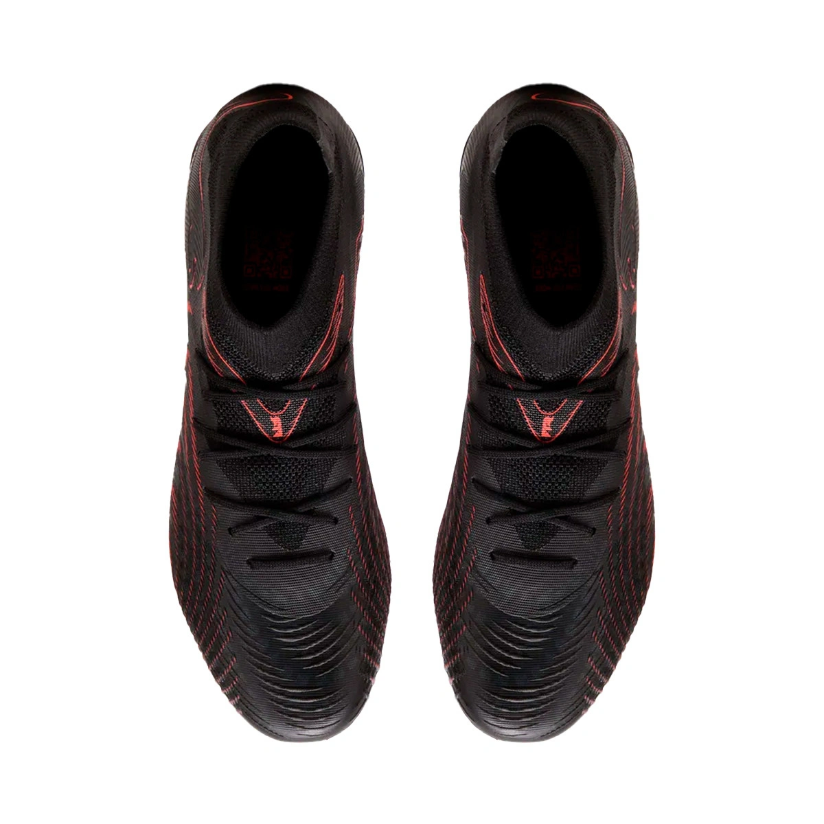 Voetbalschoen Puma Future 9 Match FG/AG voor volwassenen. Synthetische schoenen voor gebruik op kunstgras en natuurgras. Instapmodel schoenen in de kleur Puma Black-Glowing Red-Strong Gray.