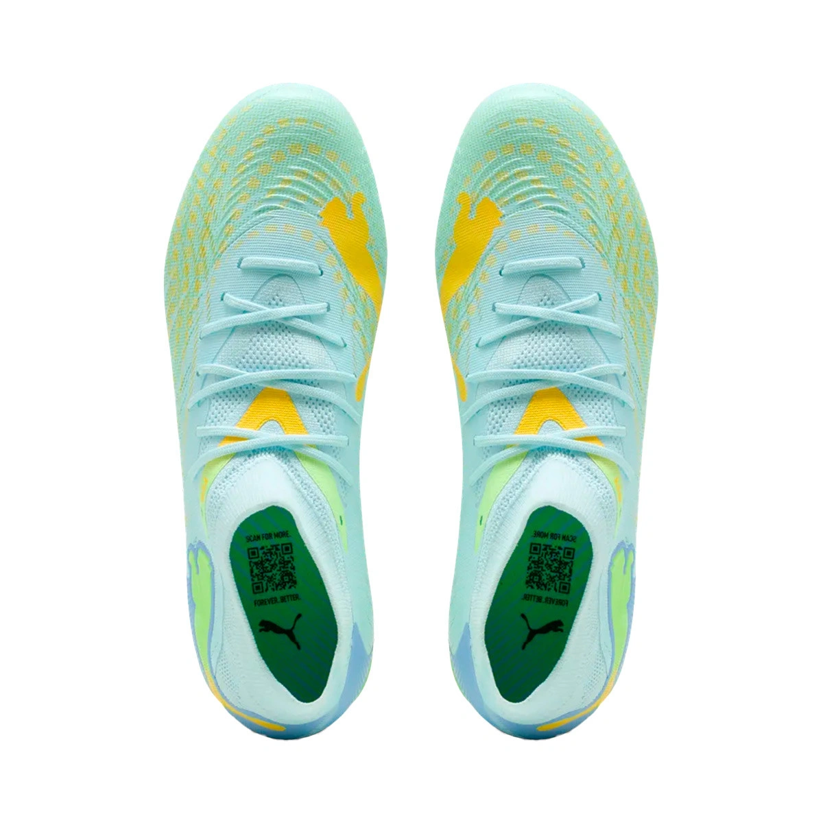 Puma Future Match voetbalschoenen FG/AG Vrouw. Synthetische schoenen voor gebruik op kunstgras en natuurgras. Schoenen uit het instapsegment in de kleur Fizzy Light-Icy Blue-Intense Lavender-Sun Str.