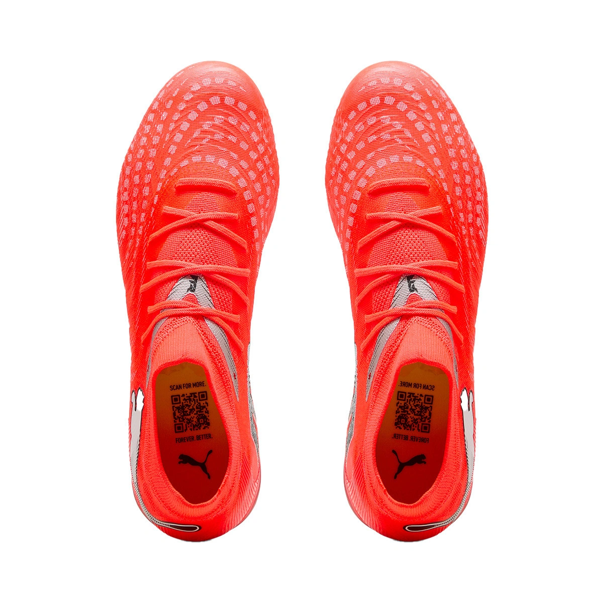 Puma Future 9 Match MxSG voetbalschoen voor volwassenen. Synthetische schoenen voor gebruik op natte natuurgrasvelden. Instapmodel schoenen in de kleur Puma Red-Puma White-Glowing Red-Puma Black.