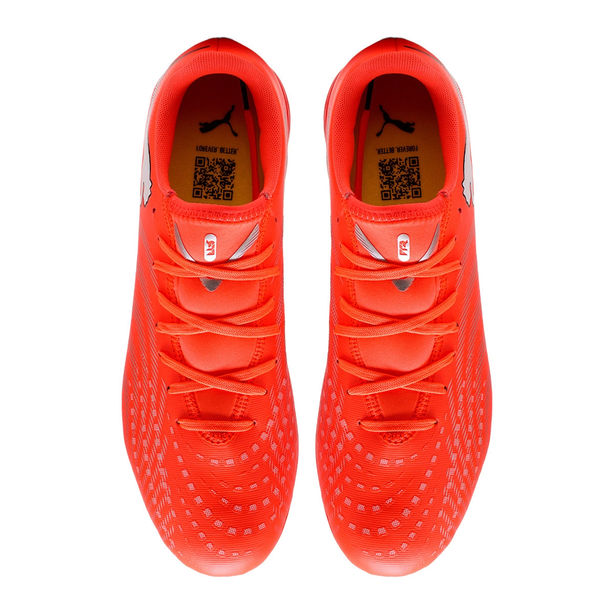 Puma Future 9 Play FG/AG voetbalschoen. Synthetische schoenen voor gebruik op kunstgras en natuurgras. Instapmodel schoenen in de kleur Puma Red-Puma White-Glowing Red-Puma Black.