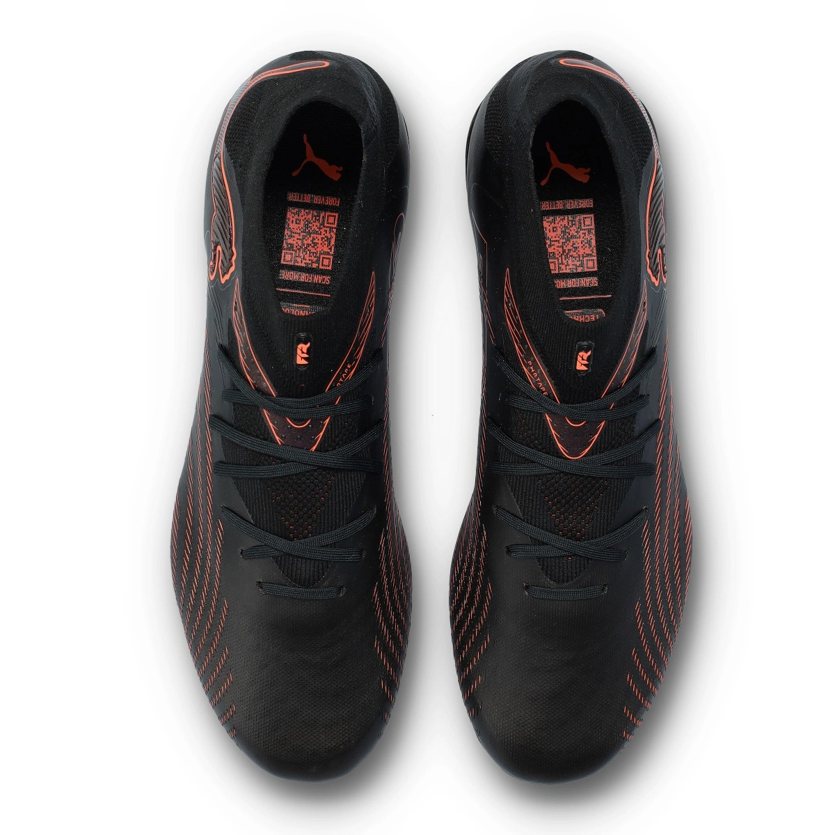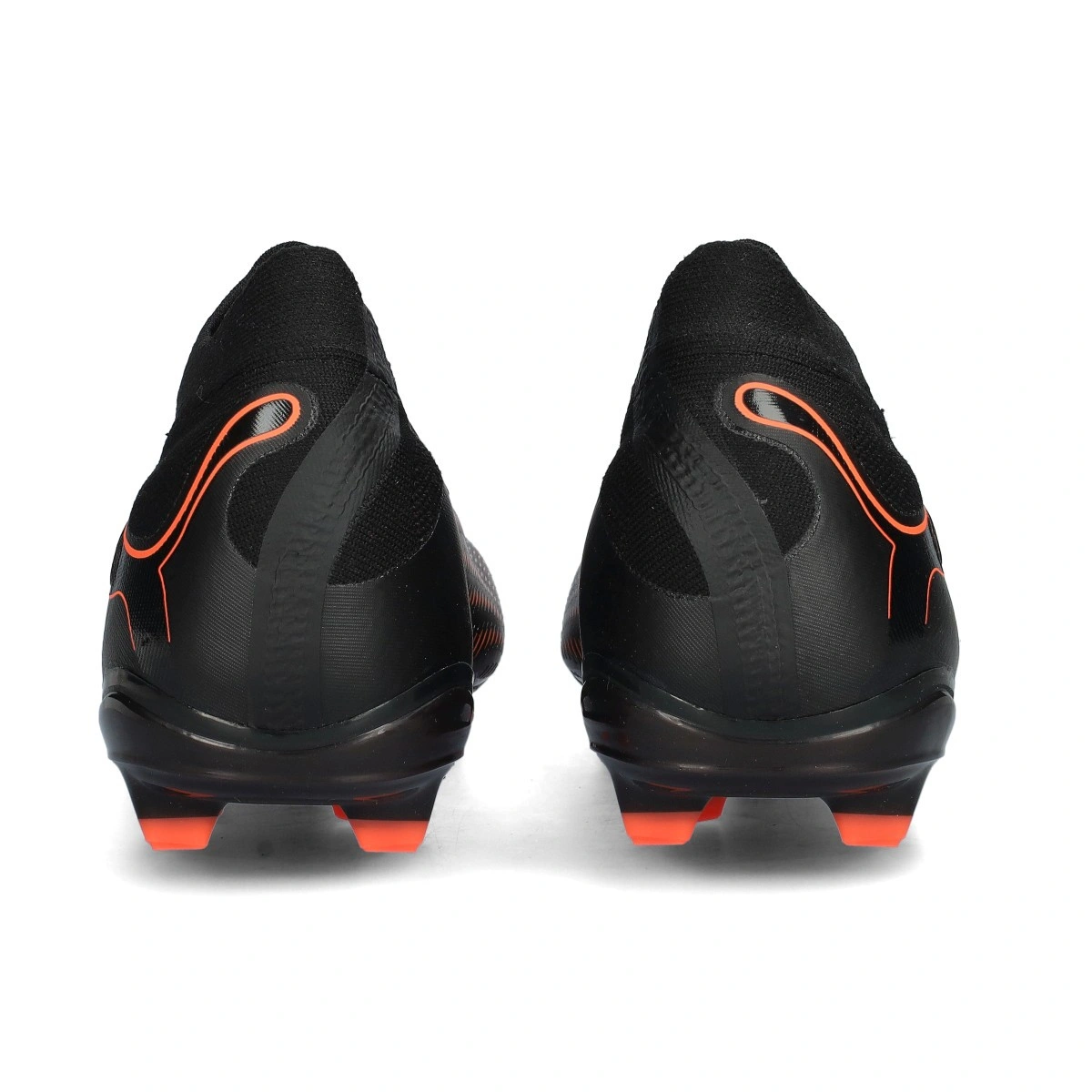 Puma Future 9 Pro voetbalschoenen FG/AG. Synthetische voetbalschoenen, voor natuurgras en kunstgrasvelden. Voor aanvallende spelers in de kleur Puma Black-Glowing Red-Strong Gray.