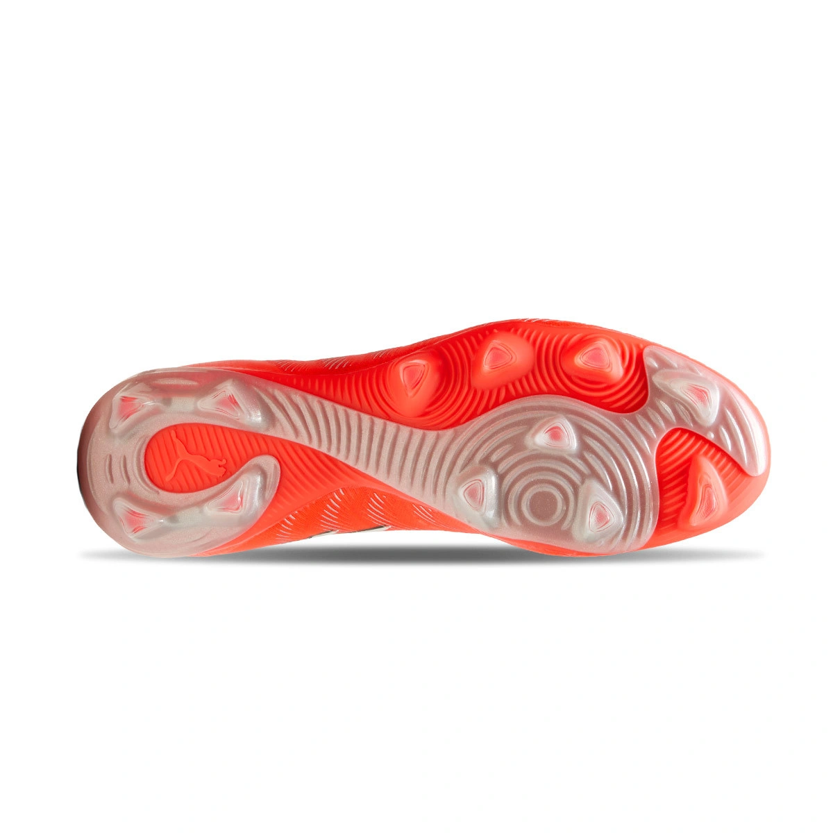 Puma Future 9 Pro FG/AG voetbalschoenen. Synthetische voetbalschoenen, voor natuurgras- en kunstgrasvelden. Voor aanvallende spelers in de kleur Red-White-Glowing Red-Black.