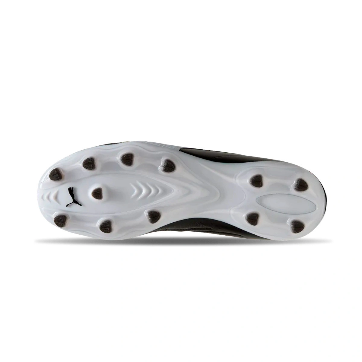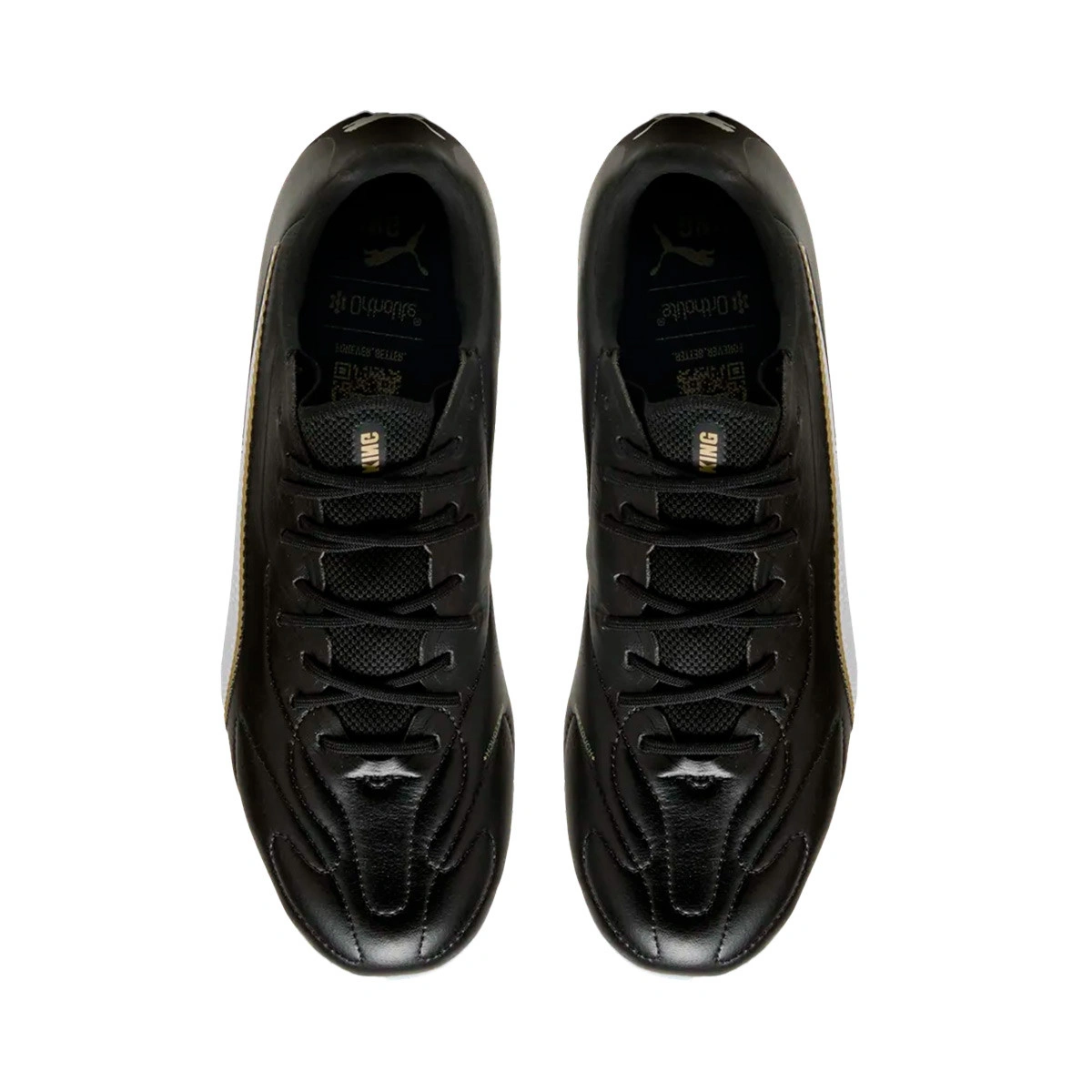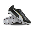 Puma King 20 Match voetbalschoenen FG/AG  voor gebruik op natuur- en kunstgrasvelden. Schoenen uit het instapsegment in de kleur Puma Black-Puma White-Puma Gold.