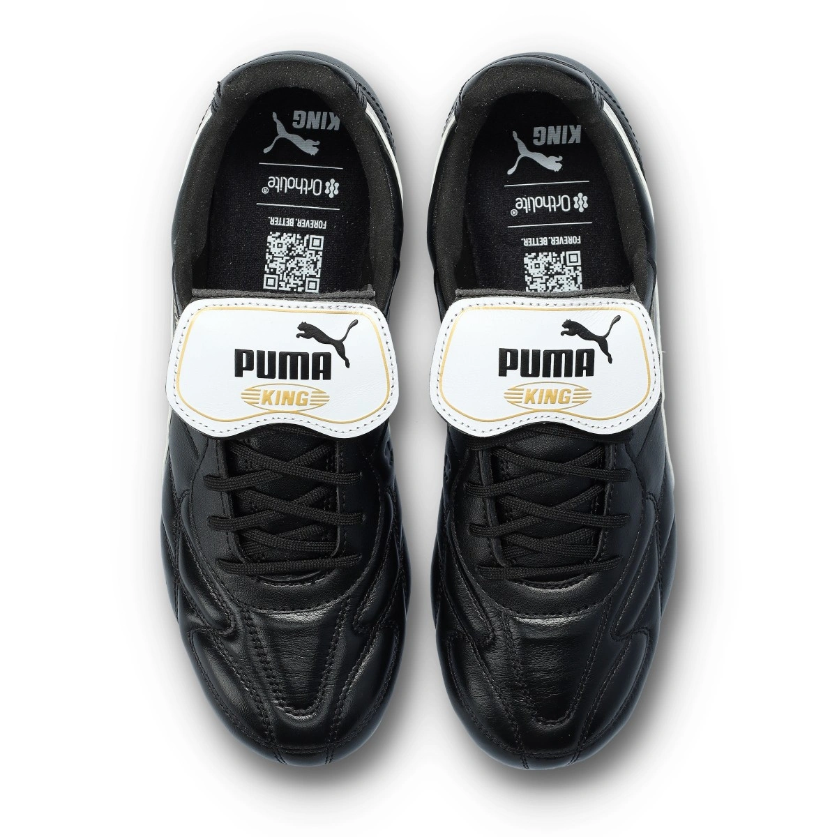 De King-aanduiding blijft de maatstaf voor de meest loyale spelers van het merk Puma . De kenmerken van deze schoen passen zich aan de meest klassieke spelers aan dankzij het natuurlijke leer, het gewatteerde bovenwerk en de zool met dubbele dichtheid met conische noppen.