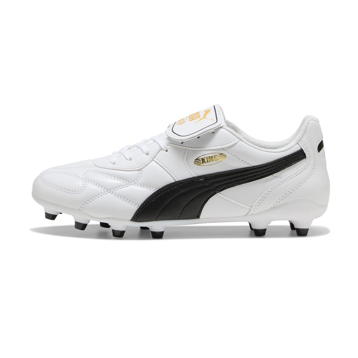 Puma King Top FG/AG voetbalschoen. Middenklasse schoen met veters voor natuur- en kunstgrasvelden in de kleur White-Black.
