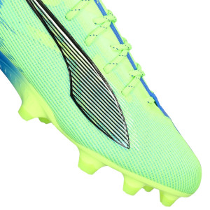 Puma Ultra 5 Ultimate FG Voetbalschoenen. Laarzen van microvezel voor gebruik op natuurgrasvelden. Hoogwaardig laarzen in Fizzy Apple-White-Bluemazing colourway.