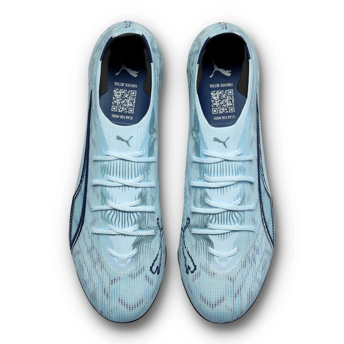 Puma Ultra 6 Ultimate Carbon Brilliance FG Voetbalschoenen  Microvezel schoenen voor gebruik op natuurgrasvelden. Hoogwaardig assortiment schoenen in de kleur Icy Blue-Blue Jewel.