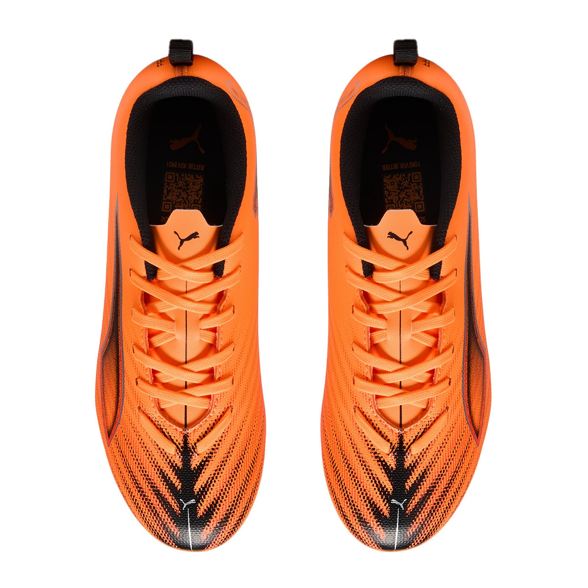 Puma Ultra 6 Play FG/AG voetbalschoen voor kinderen. Synthetische schoenen voor gebruik op kunstgras- en natuurgrasvelden. Laagwaardige schoenen in Heat Fire-Black-Glowing Red.