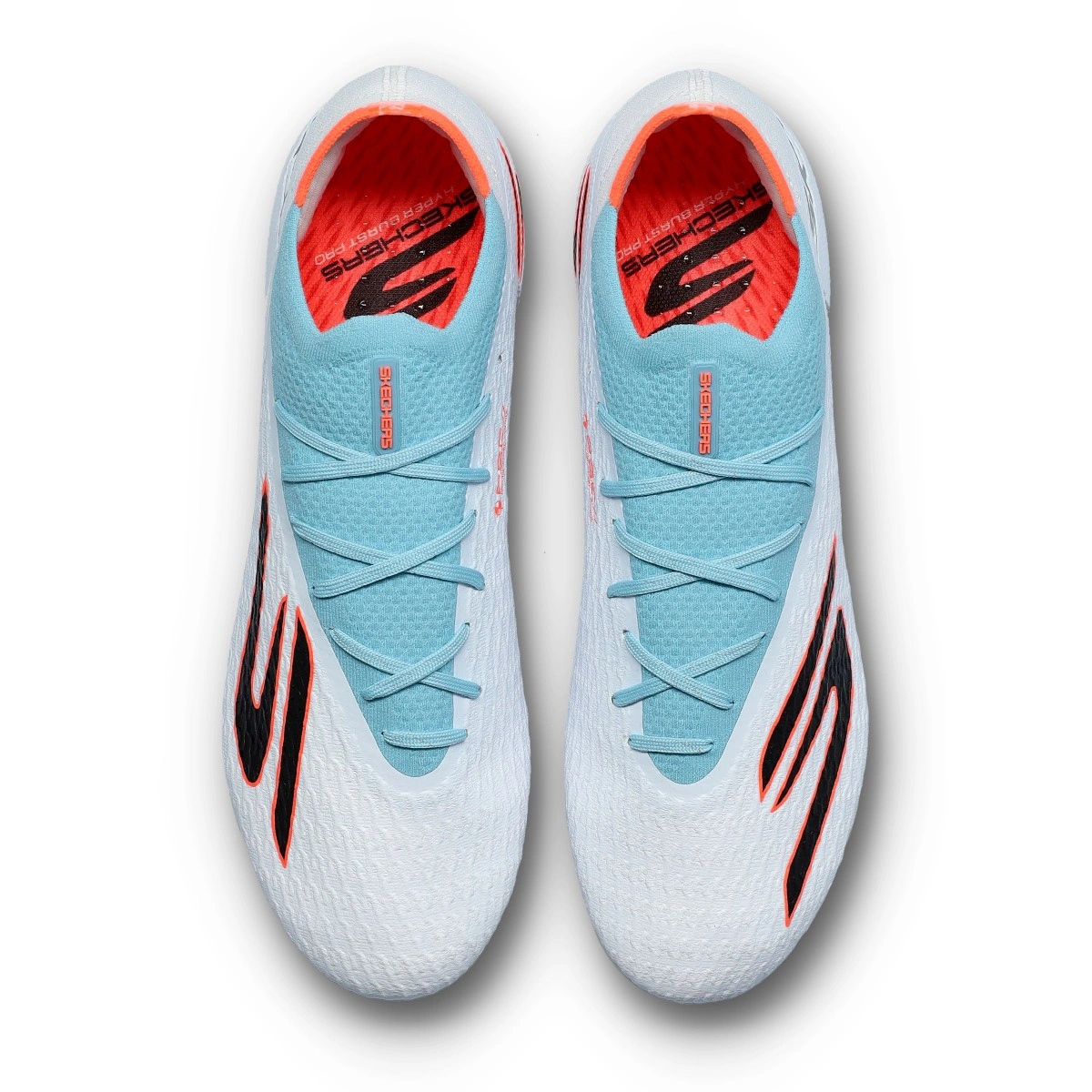 Skechers SKX_02 Elite SG schoen in de kleur White-Turquoise. Synthetische schoen voor natte natuurgrasvelden.