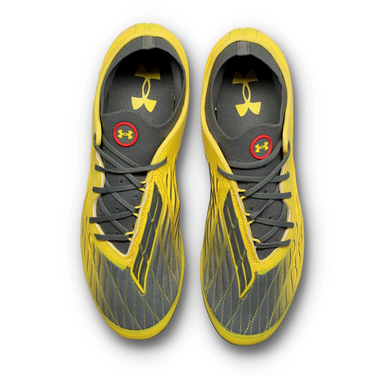 Bovenwerk met UA Clone-technologie voor een pasvorm op maat in elke maat. Binnenlaag van flexibel, authentiek materiaal vormt zich naar de voet voor een handschoenachtige pasvorm. 3D-printen voor verbeterde aanraking en controle en siliconen in contactgebieden voor beter trappen.