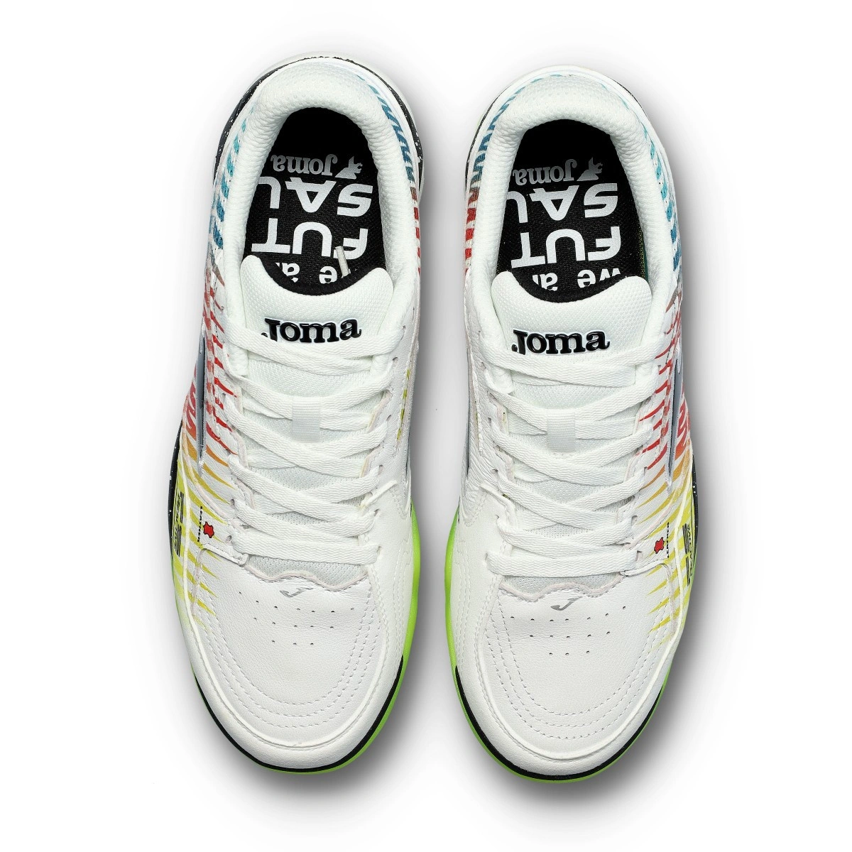 Joma FS Reactive IN zaalvoetbalschoenen. Wit leren schoenen aanbevolen voor zaalvoetbalbanen.