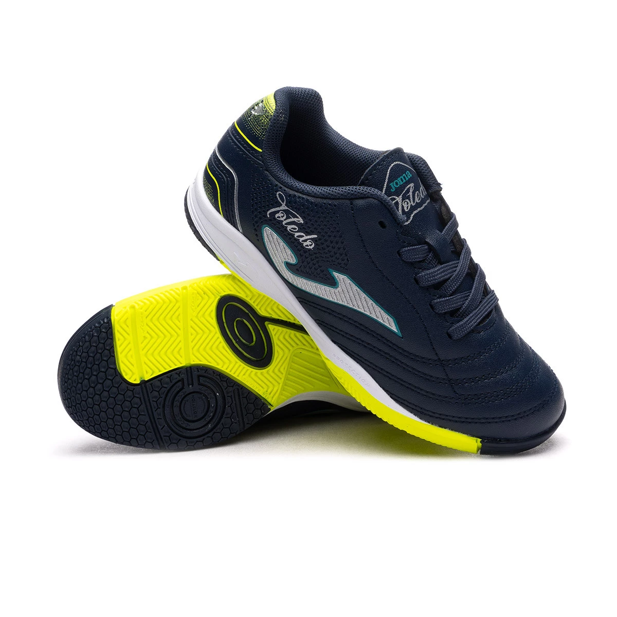Joma Toledo zaalvoetbalschoen voor kinderen. Zaalvoetbal voetbalschoenen. Nogmaals, het klassieke futsal-model voor kinderen gaat verder in de Joma -catalogus. Met deze veelzijdige schoenen kunnen de kleintjes op elk terrein spelen en trainen.