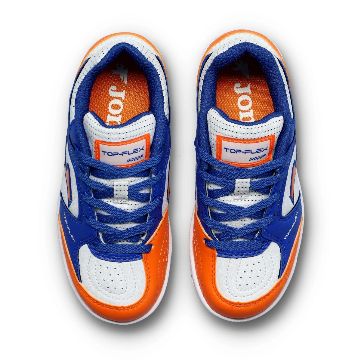 Kids' Joma Top Flex zaalvoetbalschoenen. Dit is de meest emblematische schoen in de Joma zaalvoetbalcatalogus. Een lichtgewicht en veelzijdig model, geschikt voor zowel training als competitie. Getest door professionele voetballers.