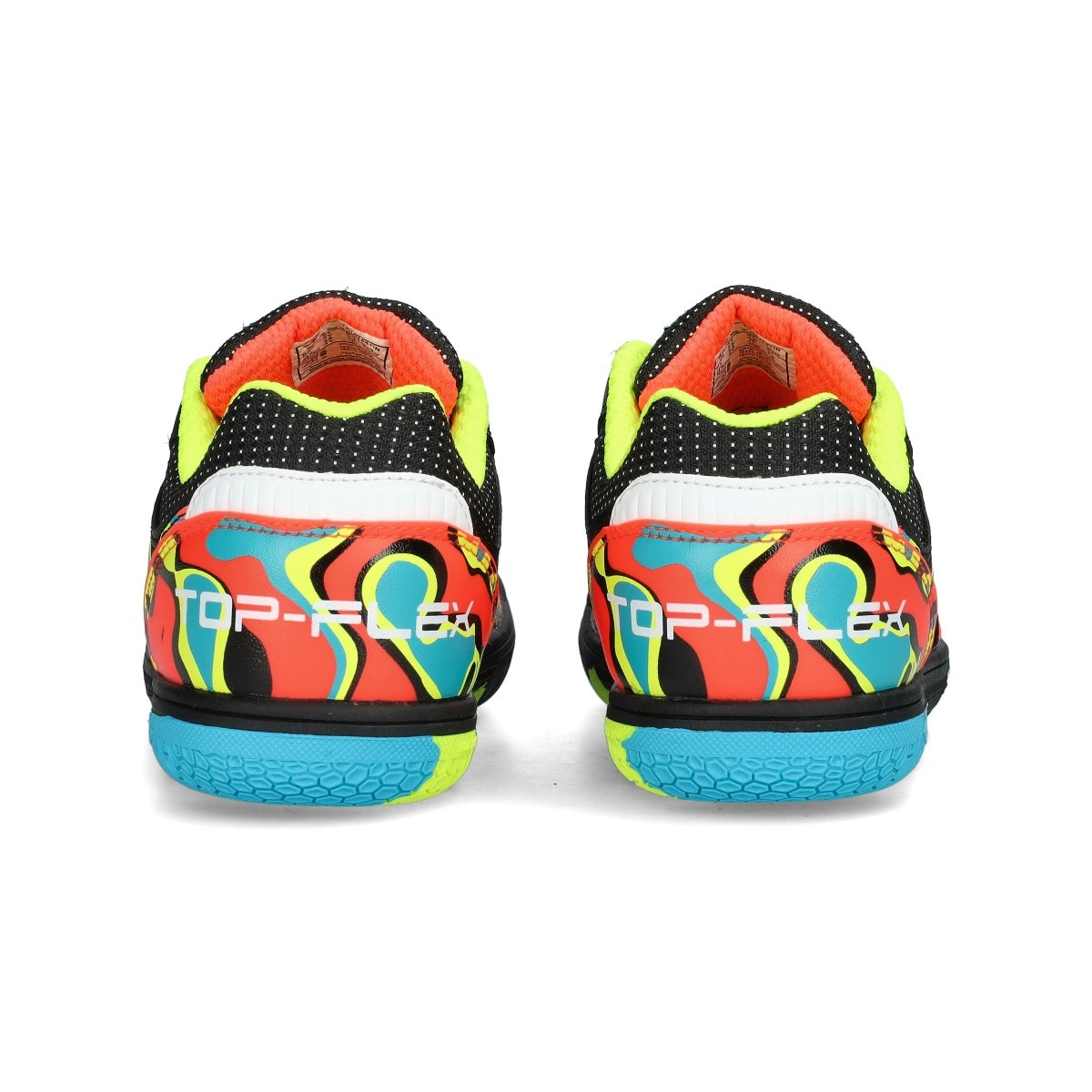 Kids' Joma Top Flex zaalvoetbalschoenen. Dit is de meest emblematische schoen in de Joma zaalvoetbalcatalogus. Een lichtgewicht en veelzijdig model, geschikt voor zowel training als competitie. Getest door professionele voetballers.