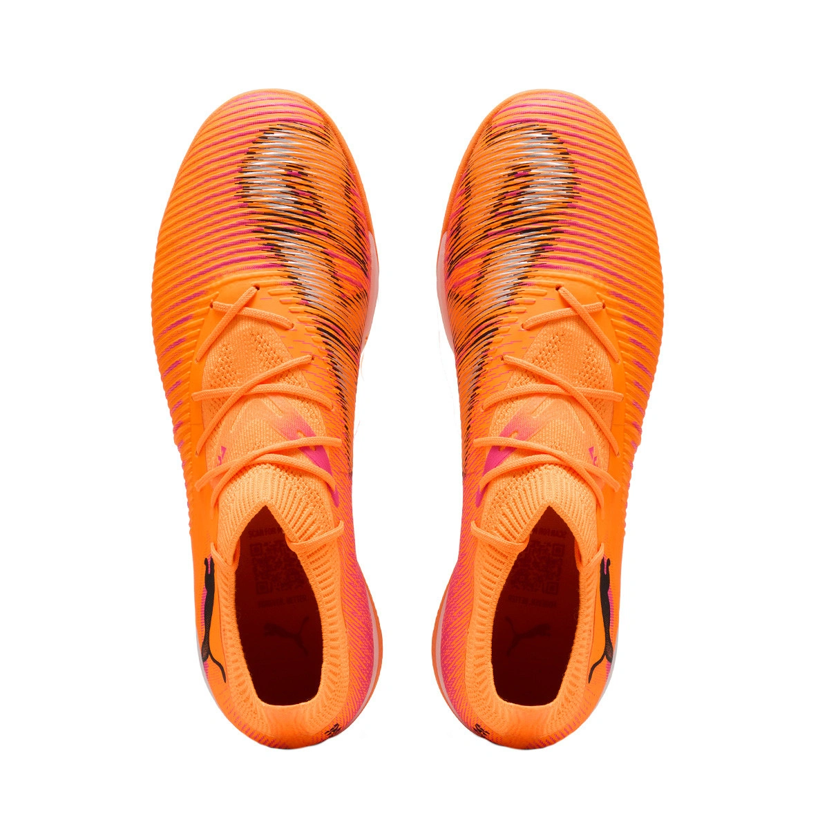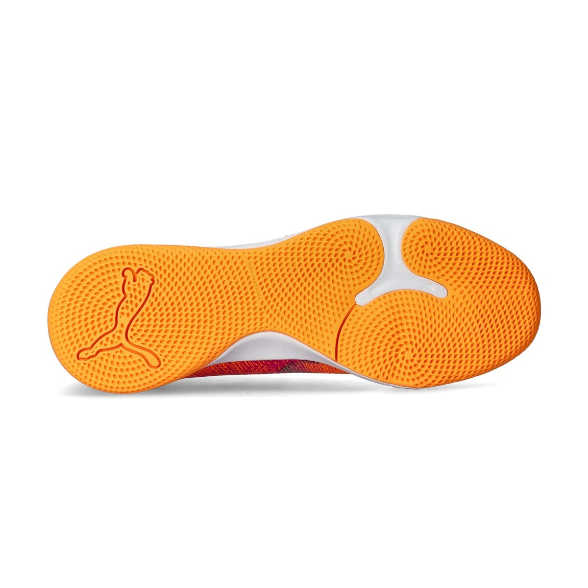 Puma Future 8 Match IT indoor voetbalschoen. Synthetische schoenen voor gebruik in indoor sportzalen. Middenklasse schoenen in Heat Fire-Black-Ravish kleur.
