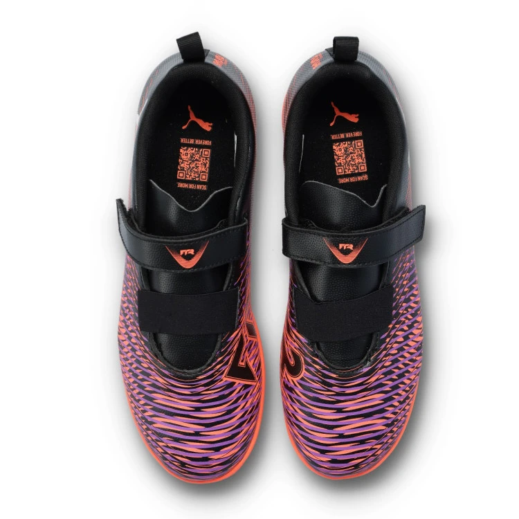 Puma Future 7 Play IT-futsalschoen voor Kinderen . Synthetische schoenen voor gebruik op indoorvelden. Hoogwaardig laarzen in de kleur Zwart-Wit-Gloeiend Rood .