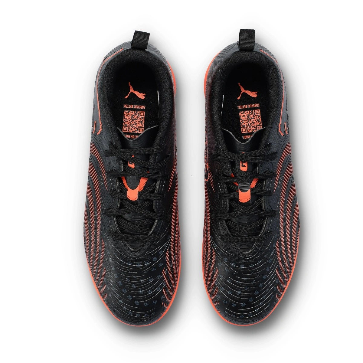 Puma Future 9 Play IT zaalvoetbalschoen met veters voor kinderen. Synthetische schoenen voor gebruik op indoorvelden. High-end schoenen in de kleur Puma Black-Glowing Red-Strong G.